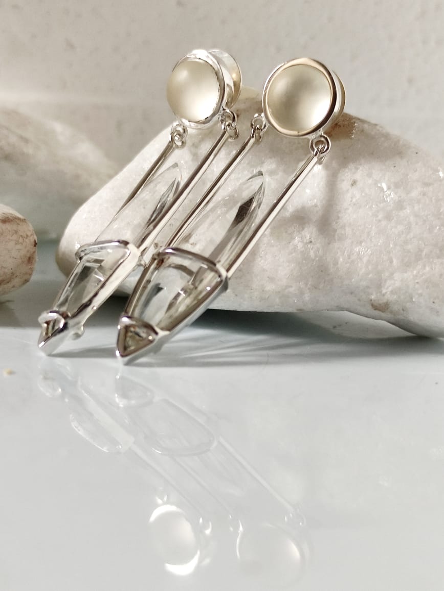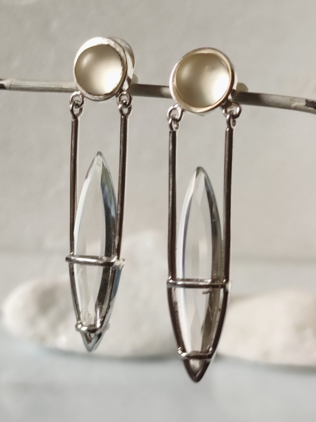 Brinco em prata 950, com Cristais Cabochão e Navete