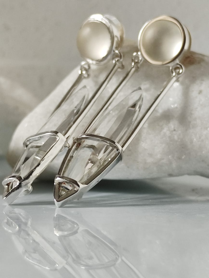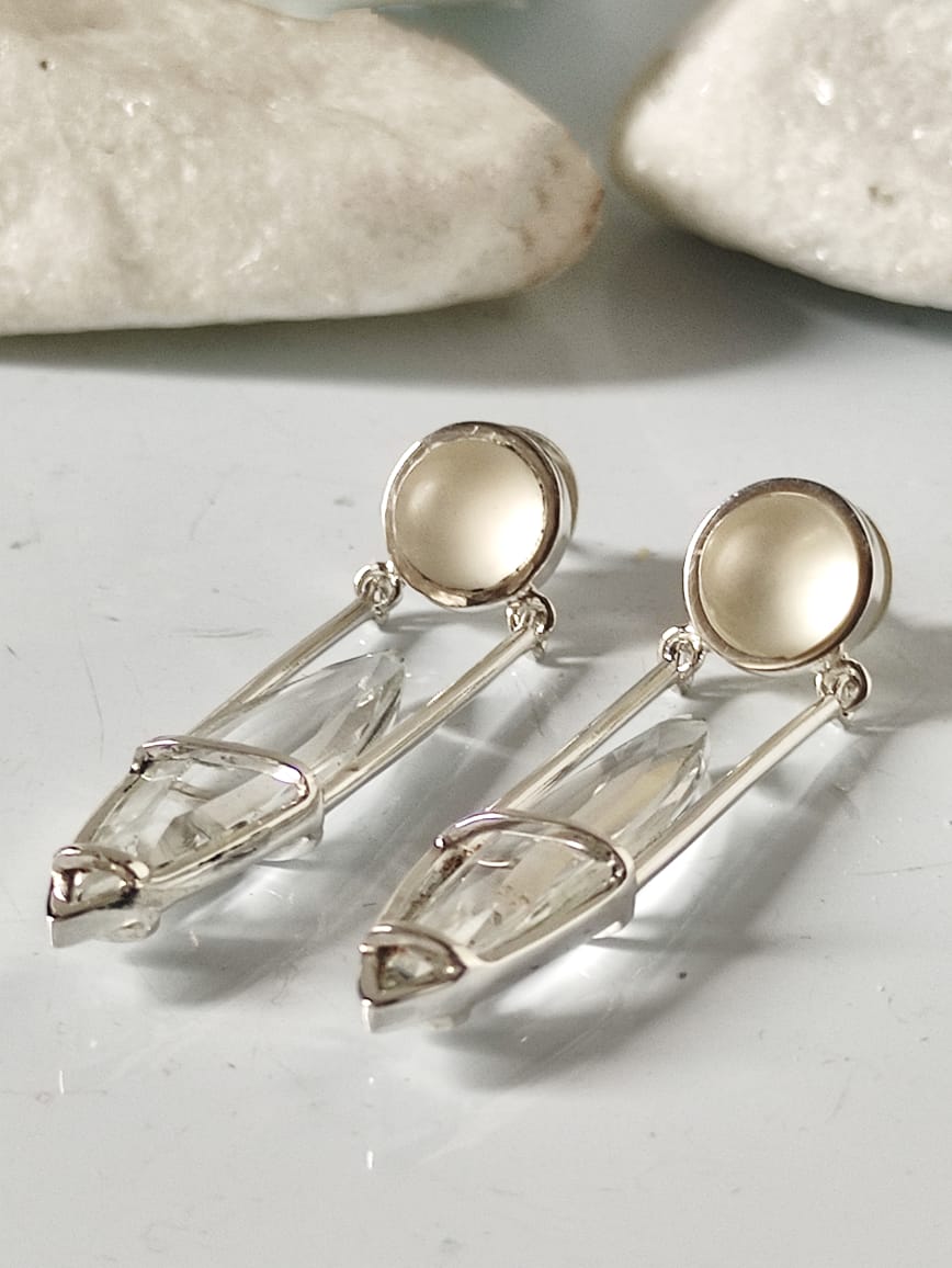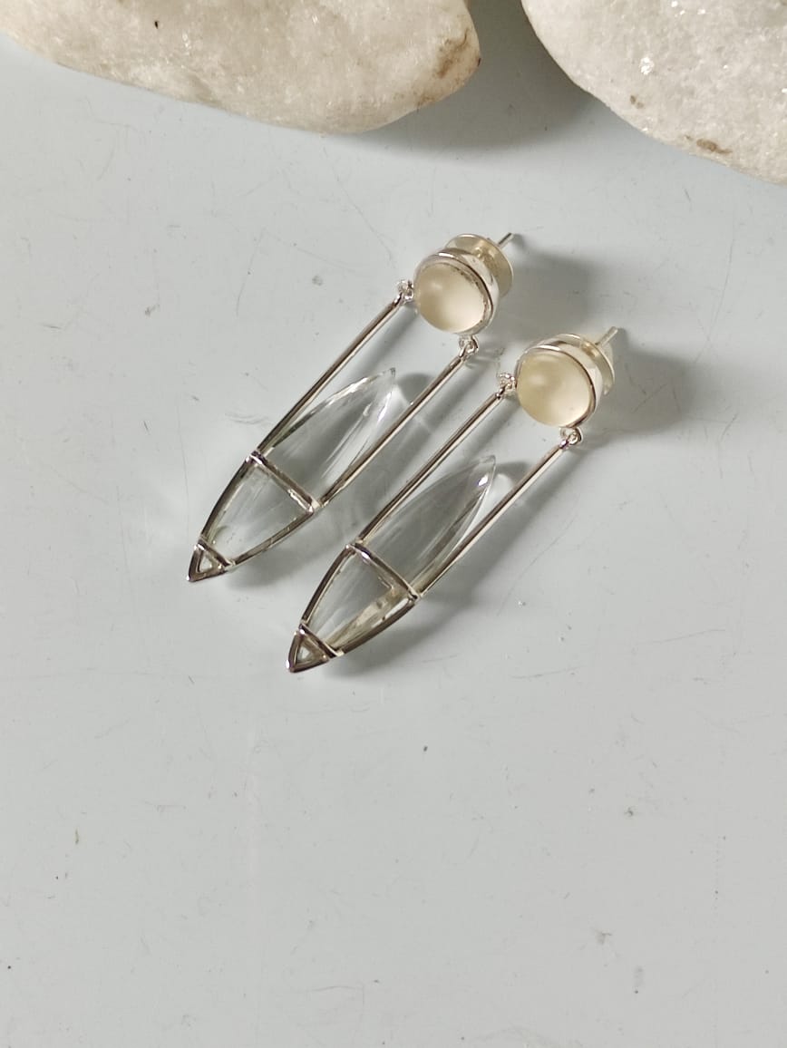 Brinco em prata 950, com Cristais Cabochão e Navete
